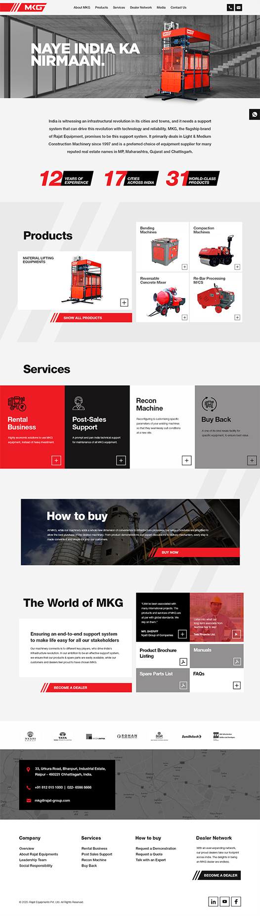 MKG, the flagship brand of Raipur-based Rajat Equipment, needed to create an effective outreach to create a pan-India dealer network. With digital being the best outreach medium, we designed a new website for MKG. All the offerings of MKG - products, services and other dealer programs were listed on a website that had a simple navigation. The website recieved significant traffic and also led to quality leads for the brand to explore new tie-ups.
